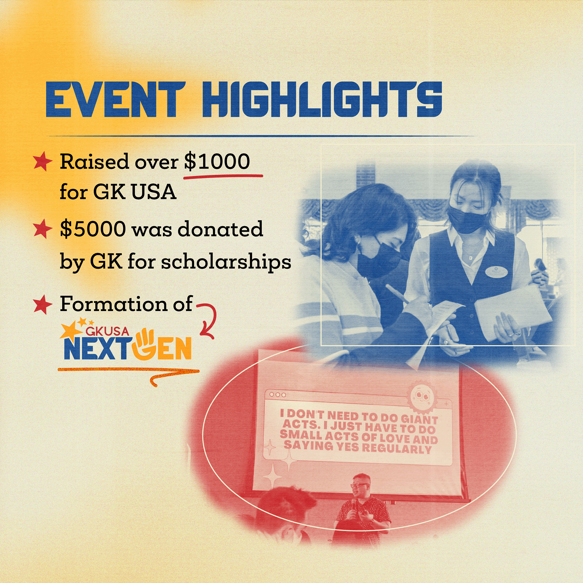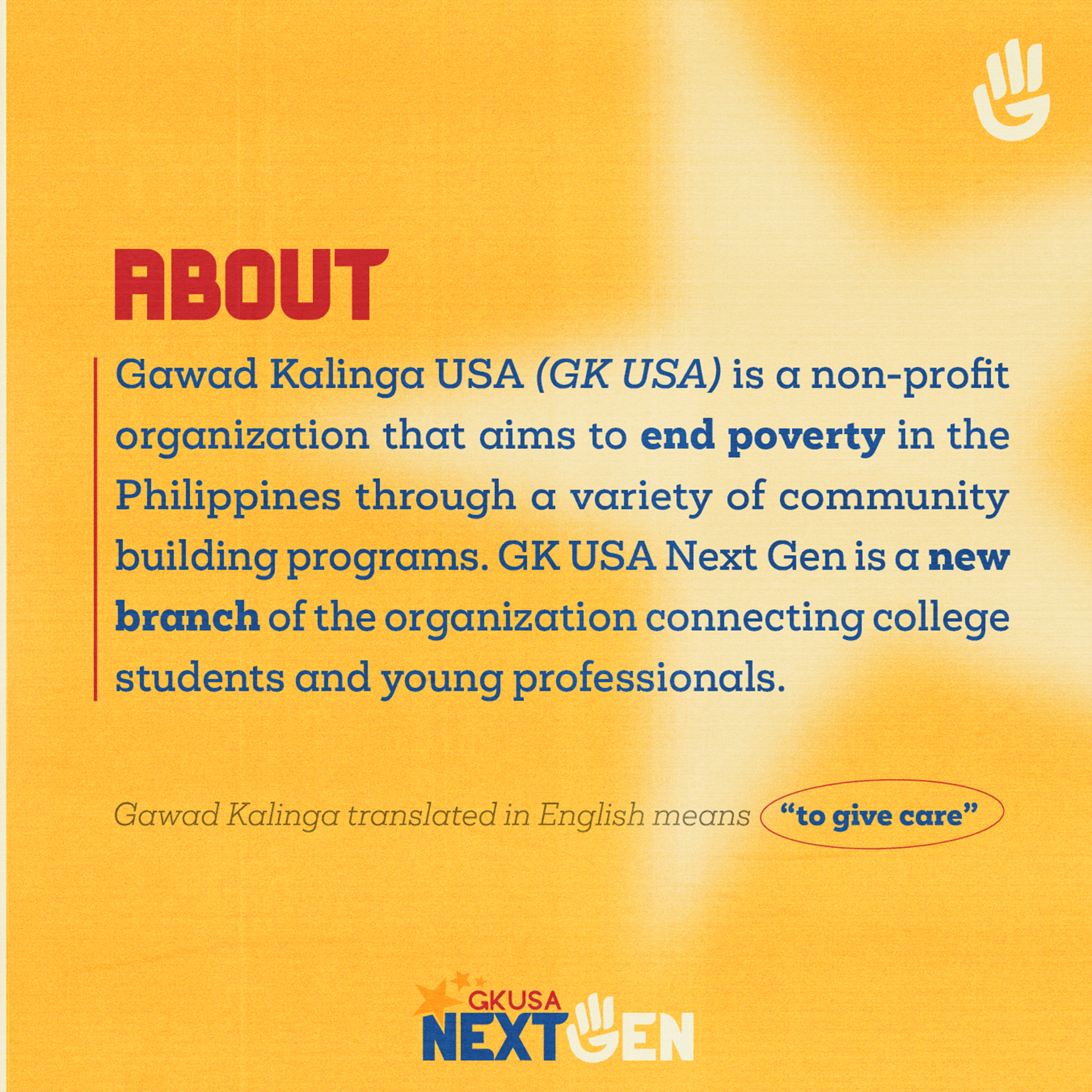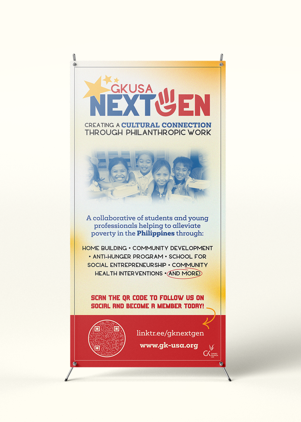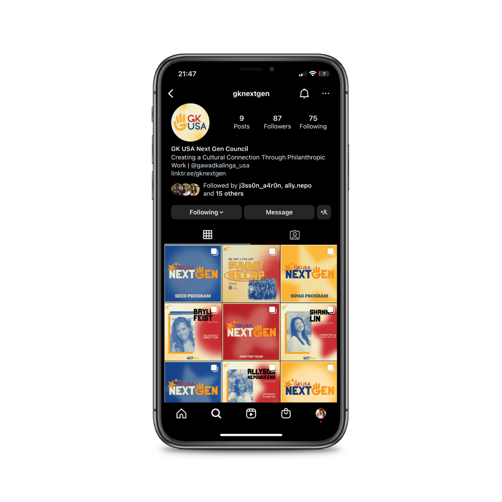 Creating a Cultural Connection Through Philanthropic Work" http://linktr.ee/gknextgen. In collaboration with other Head of Graphic Design, Isabella Billones.